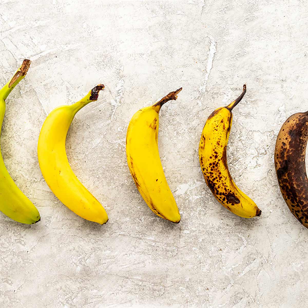 As bananas progress through these stages, their starches break down into sugars, making them softer, sweeter, and more flavorful. Chlorophyll also breaks down, turning the green peel progressively more yellow, then brown.