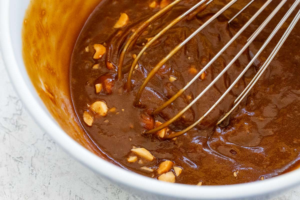 The hoisin sauce has a strong savory umami taste, so no additional soy sauce or fish sauce is needed. I find that the sauce is sweet enough from what’s already added to the peanut butter.