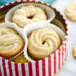 Homemade Danish butter cookies are the perfect treat to share and give as edible gifts! Make your own tin with different unique piped designs.