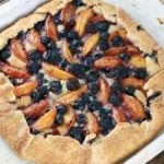 A rustic berry crostata with peaches is the ultimate summer dessert! A tender cornmeal crust is filled with almond creme and topped with fresh stone fruit and berries.