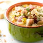 A healthier version of slow cooker cauliflower corn chowder using steamed cauliflower and cooked corn were blended with chicken stock to add a natural thickness to the soup.